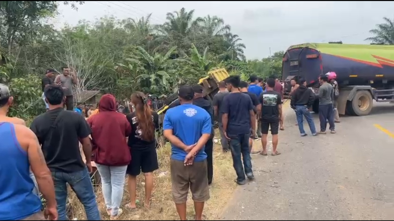 Sementara itu, penumpang dump truk, Ilham, mengalami luka-luka dan langsung dilarikan untuk mendapatkan perawatan medis. Sedangkan pengemudi truk tangki CPO, Jumanja, mengalami luka ringan dan menjalani perawatan di Puskesmas Lingga, Kecamatan Sungai Ambawang.